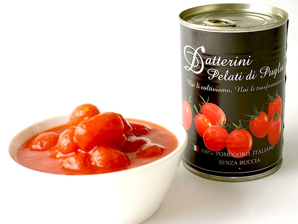 ダッテリーノトマトのトマトジュースづけはジューシーで雑味がなく、優しい後味を愉しむため、 丁寧にトマトの皮を剥いて缶詰にしました。