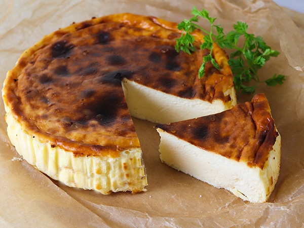 このお店では「タルト デ ケソ ドノスティアラ」(バスク語でサン セバスチャンのチーズケーキ)と呼ばれるクリームチーズとたっぷりの生クリームで仕上げるケーキが名物です。