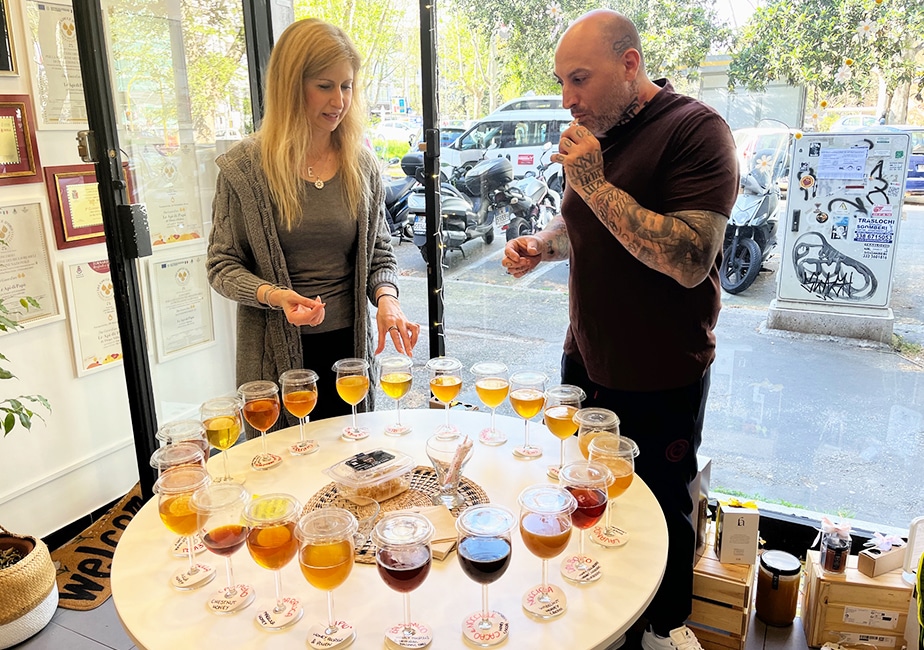 1年前にローマにオープンした高級ハチミツ専門店「ミエロテカ」です。